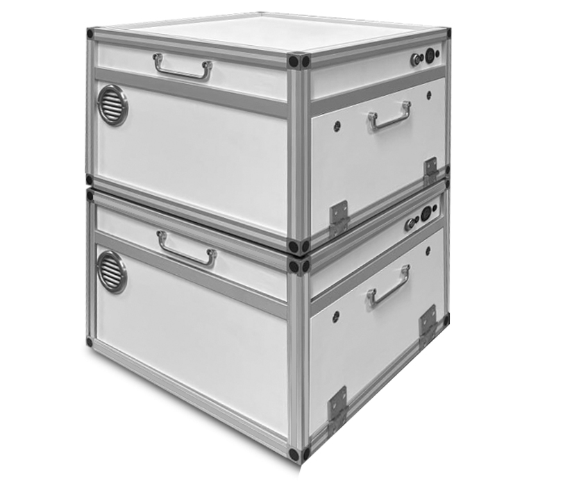 Die Box verfügt über einen integriertes Kühlsystem mit 10 Litern umweltfreundlichem Fluid, Das Multi-Filter-Abgasmanagementsystem absorbiert Giftstoffe, insbesondere Flusssäure (HF) und VOCs. Die Boxen verfügen über eine akustische Alarmfunktion, optischer Funktionskontrolle und Notstromversorgung für drei Monate.
